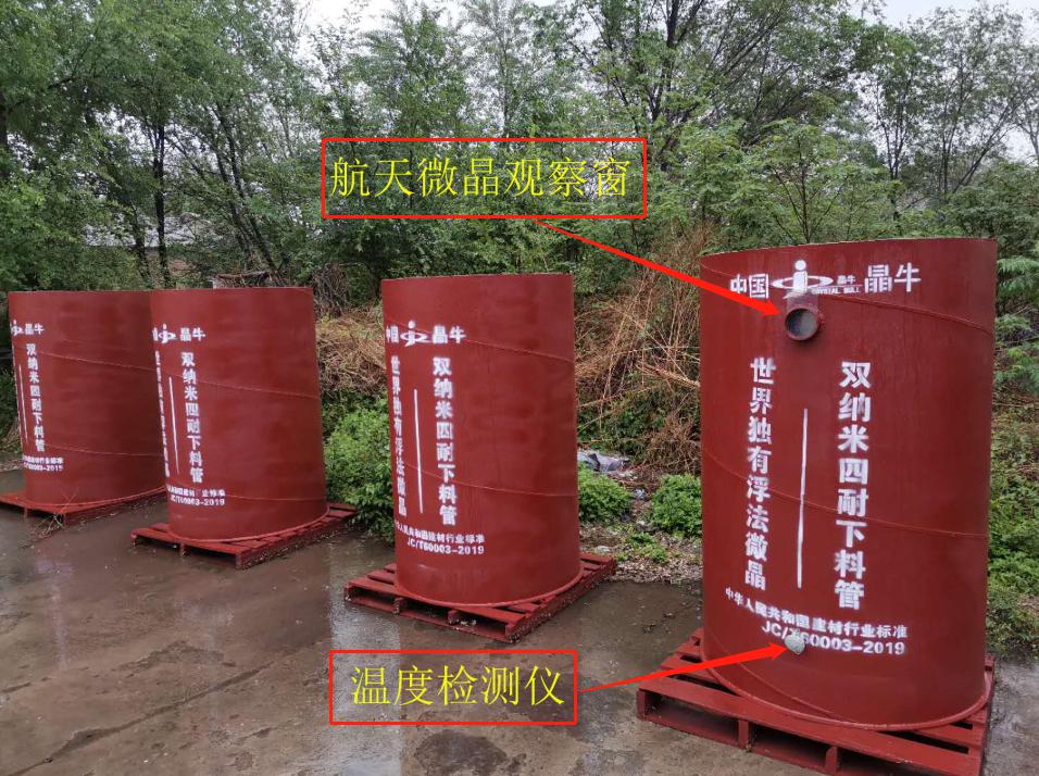 據國家硅酸鹽學會工程技術分會專家現場考察后認定,新型下料管是結合水泥行業生產工藝現狀進行創新研發的。新型下料管較之過去的傳統下料管具備多個特點和優勢。一是整個水泥下料管內壁抗結皮、防堵塞效果更為突出。二是新型下料管中裝備了晶牛集團獨創的浮法航天透明微晶玻璃,可在不打開下料管觀察孔的情況下觀察工況流程,對下料管內側進行180度可視觀察,大大降低了工人的勞動強度,壓縮了水、電、機械運行成本,提高了現場操作安全保障系數。三是新型下料管裝備了可控溫度熱電偶,巡視員現場即可操作觀察管內溫度,不用再去中控室調出相應時段的溫度參數來調整工藝參數。四是新型下料管內襯由多個微晶內襯管組成,微晶內襯下料管由碳化硅與氮化硅等特殊原料燒制而成,燒成溫度為1300℃-1600℃,具有耐高溫、耐沖擊、耐磨、耐腐蝕、膨脹系數小的特性,解決了在高溫狀態下,下料管內襯與水泥配合料反應而結皮的技術難題,微晶下料管與連接下料管的上下法蘭之間,以及整個內襯,表面光滑,不掛料。五是現場安裝更加簡便,節省三分之二的工時與人工。新型下料管的微晶內襯,每層內襯管一般布有多個不銹鋼螺栓,螺栓平均分布在管中部,且新型下料管的微晶內襯與下料管外殼之間有特殊保溫材料,保證了節能效果。