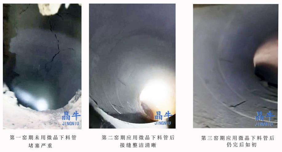 據考證,兩次大修不更換過內襯裝備,仍在正常使用,這在水泥生產歷史上無此先例。晶牛集團將其四耐微晶安裝在預熱器的關鍵部位。經過三年多的生產試驗證明,微晶內襯在水泥窯尾煙室的耐熱性,能滿足正常生產≥1200℃的高溫要求,未發生脫落、燒裂現象。在未清理的狀態下,微晶內襯處只有2-3毫米的浮塵,且不必清理,達到了抗結皮性能的理想狀態。使每小時多次放炮崩渣、每班需多名操作人員現場清結皮的繁重危險的工作狀態成為歷史。晶牛微晶在水泥預熱器、篦冷機、磨機等高溫、易結皮、高耐磨部位上的應用,改變了原來的水泥生產操作規程,提高了產品質量,打通了水泥企業高溫結皮的生產技術瓶頸,并改變了下料管每窯期必修的歷史。一個將迅速改變國內傳統工業生產狀態與千家萬戶生活狀態的“微晶”時代已經到來。